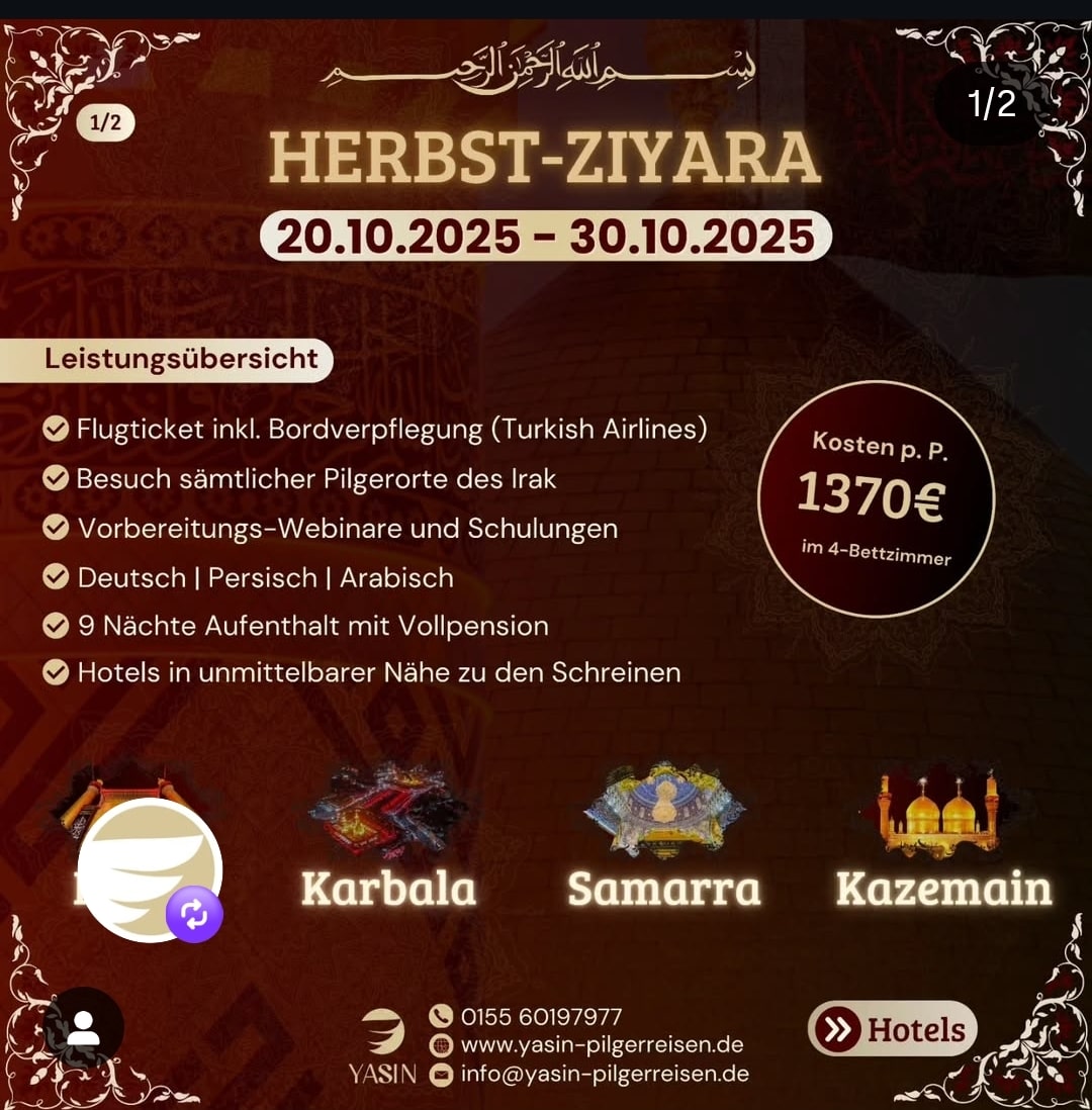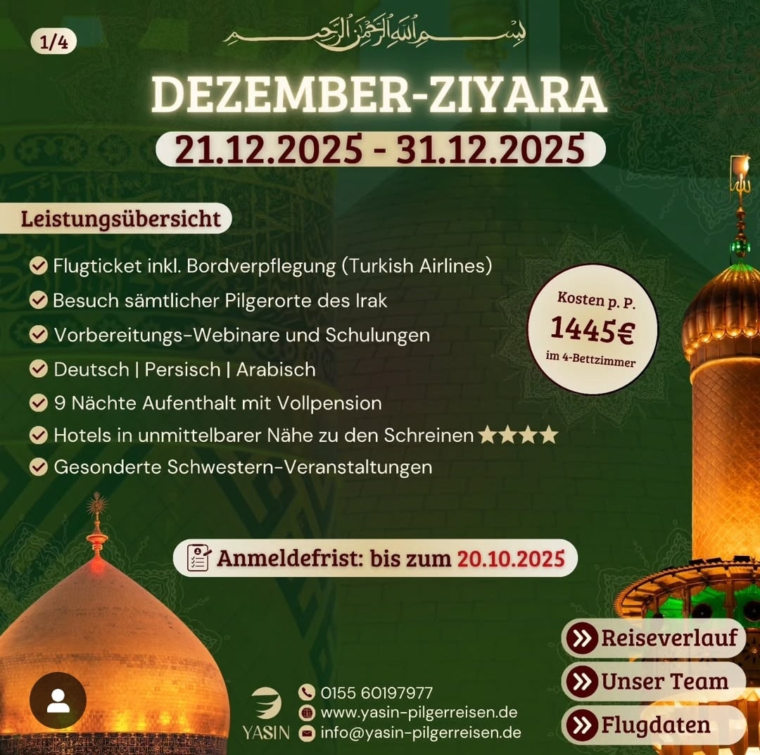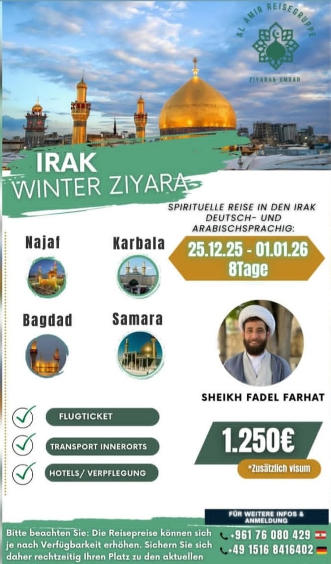 Irak Ziyarat 2025 – Hier findest du die Flyer der Organisationen für die Pilgerreisen nach Irak für das Jahr 2025.