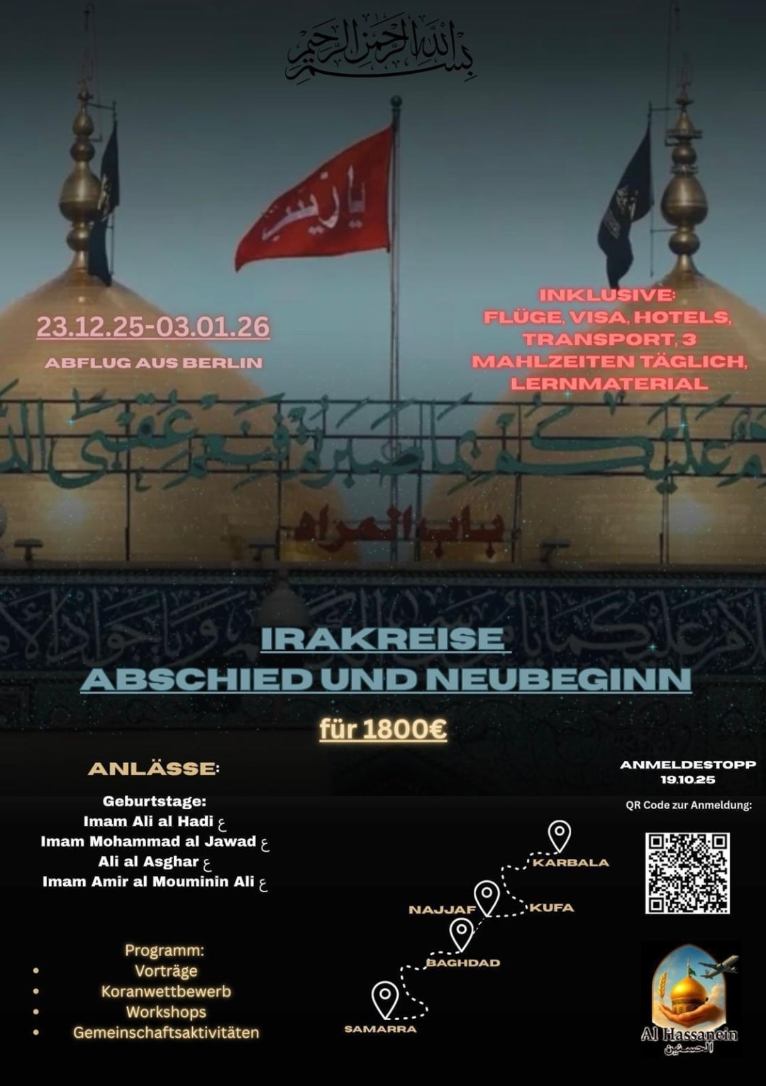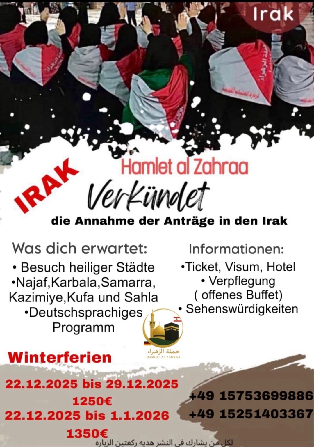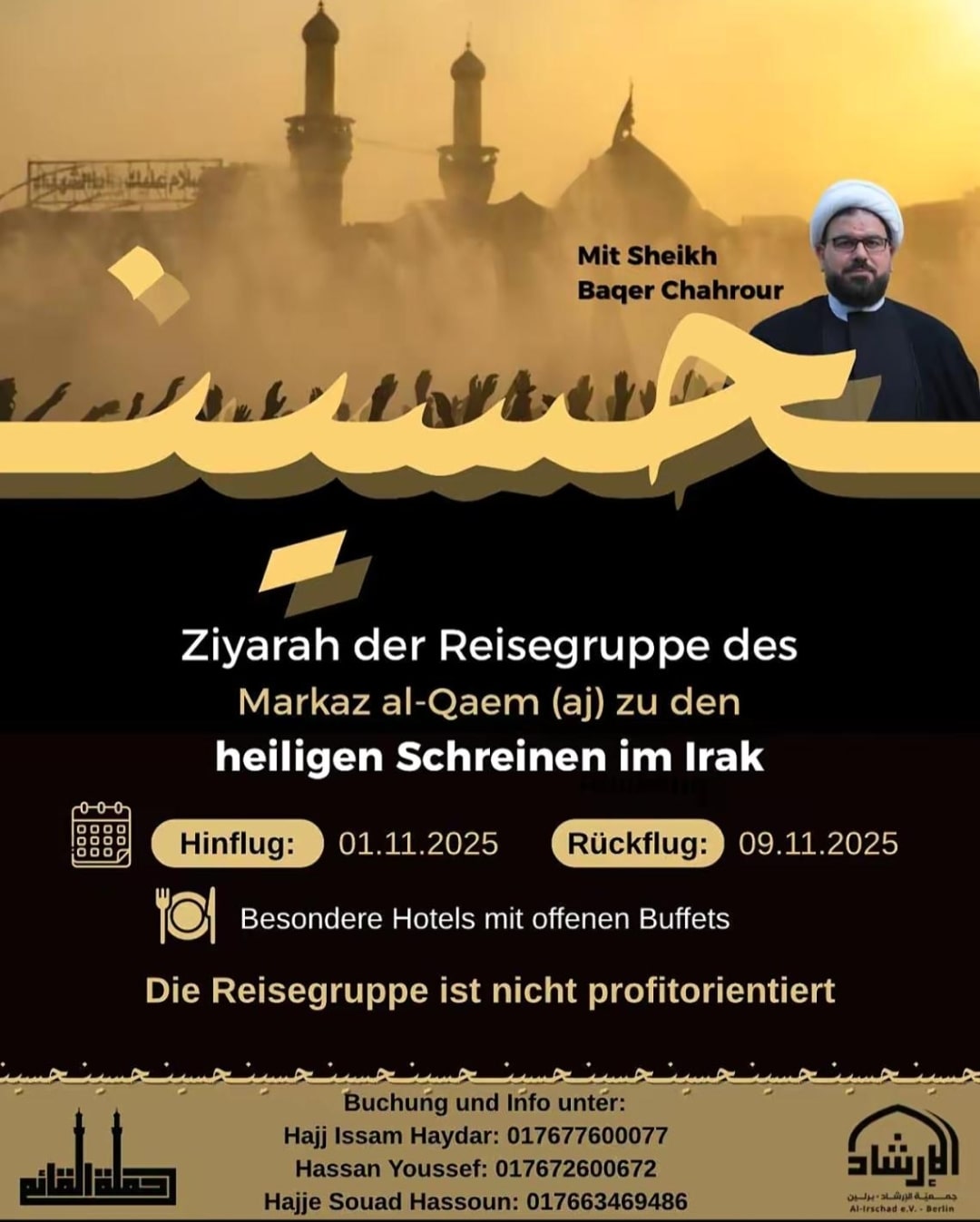 Irak Ziyarat 2025 – Hier findest du die Flyer der Organisationen für die Pilgerreisen nach Irak für das Jahr 2025.
