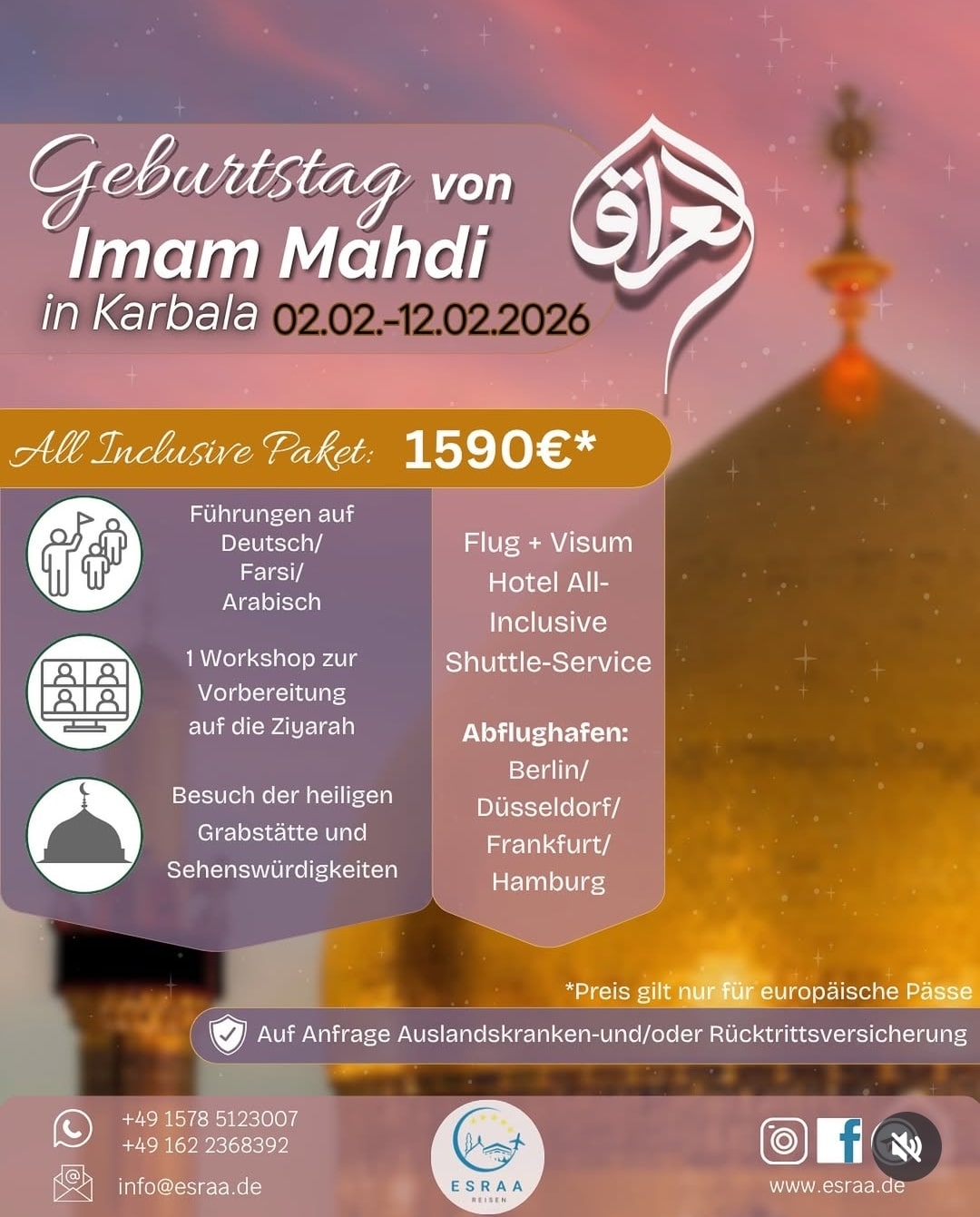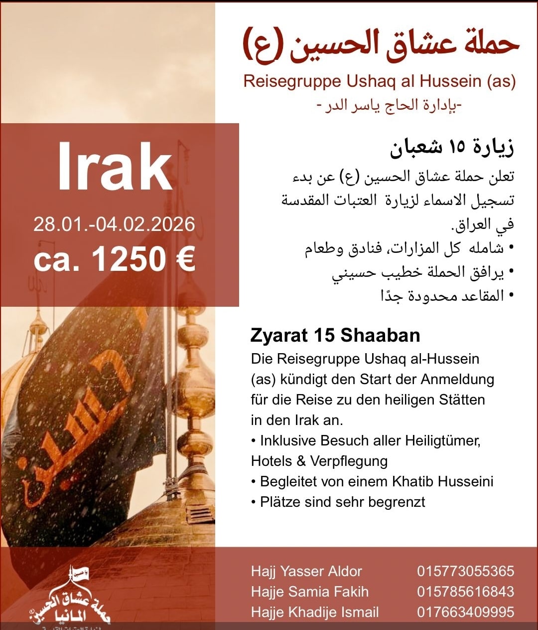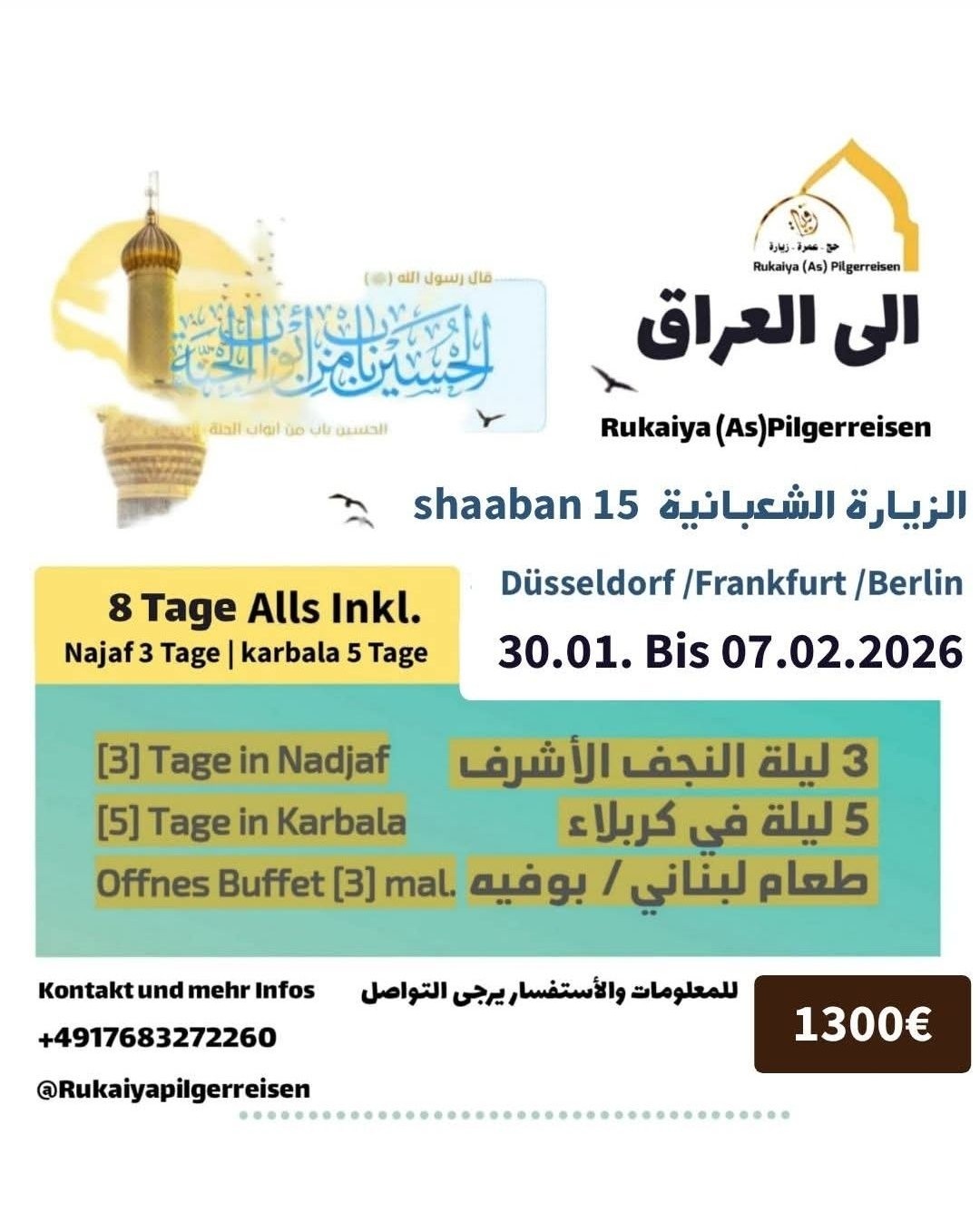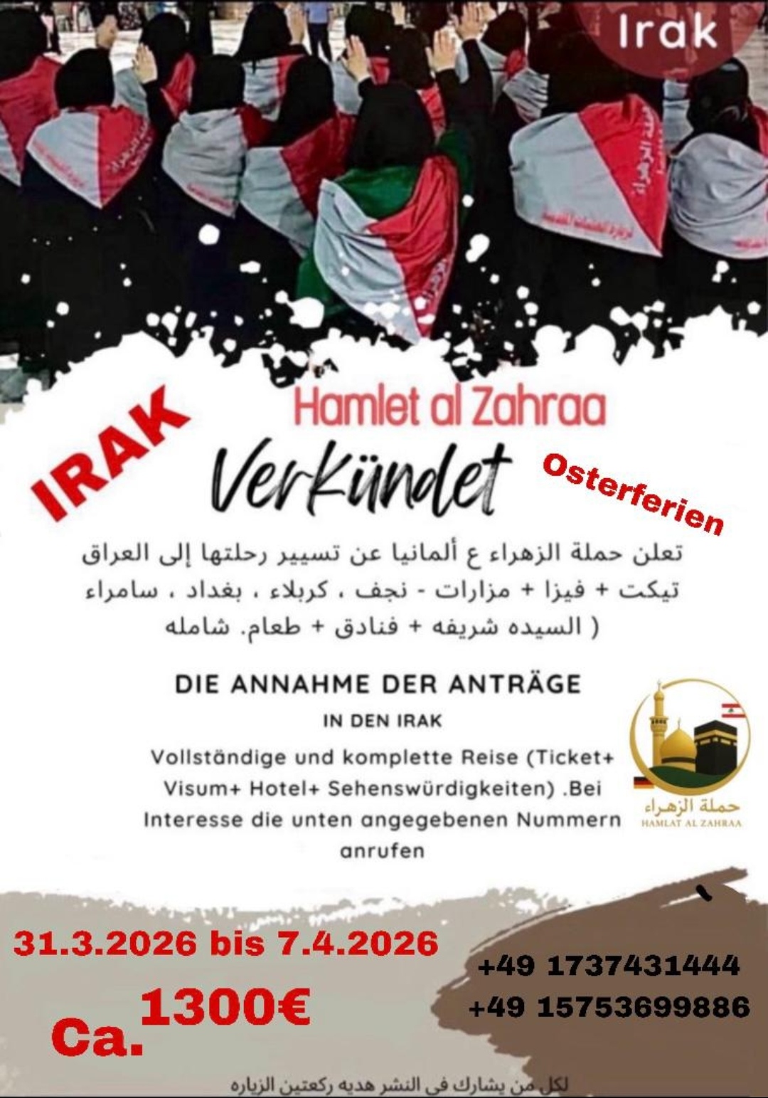 Irak Ziyarat 2026 – Hier findest du die Flyer der Organisationen für die Pilgerreisen nach Irak für das Jahr 2026.